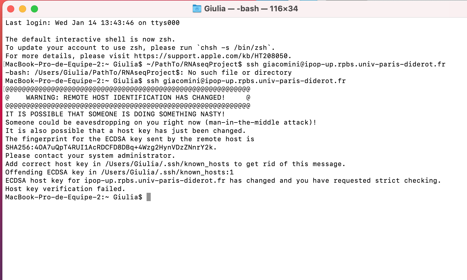 The message you are seeing means that the “host” (that is, the ipop-up console) has changed since the last time you logged in (years ago). This is because the machine was reinstalled at some point in between.